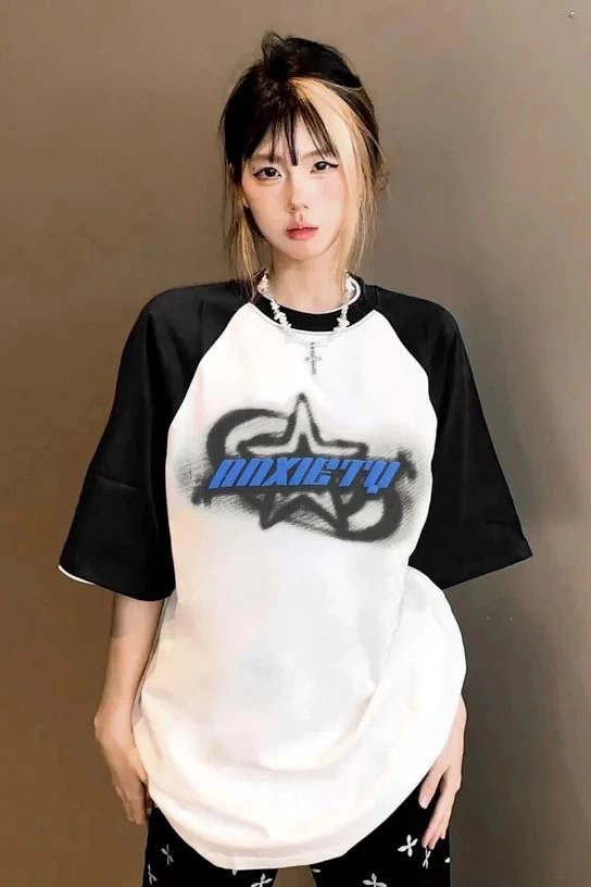 Anxıety Siyah Reglan Kol Kısa Kollu Tişört