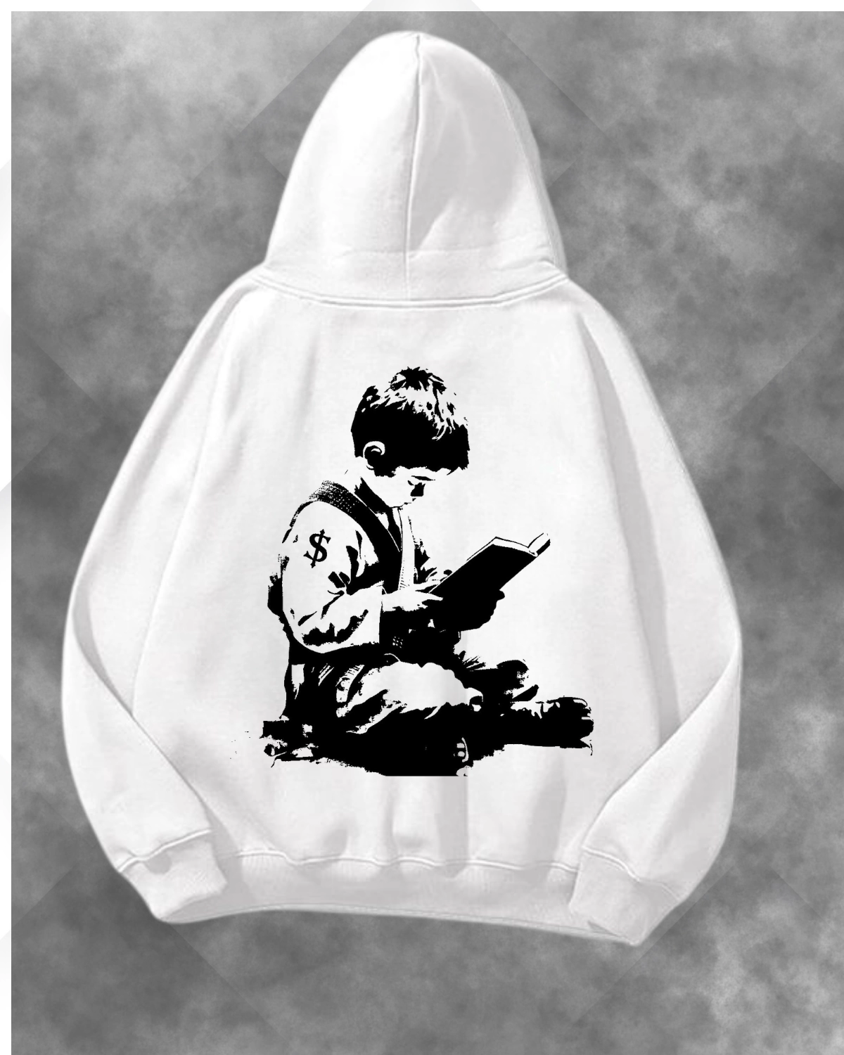 Banksy Tarzı Okuyan Baskılı Unisex Oversize Kapüşonlu Sweatshirt