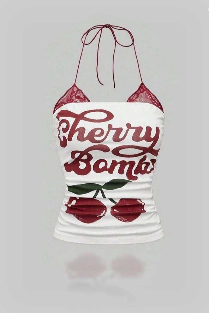 Beyaz Cherry Bomb Dantelli Ek Askılı Crop