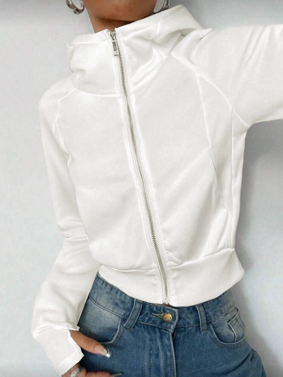 Beyaz Kapüşonlu Hoodie Hırka
