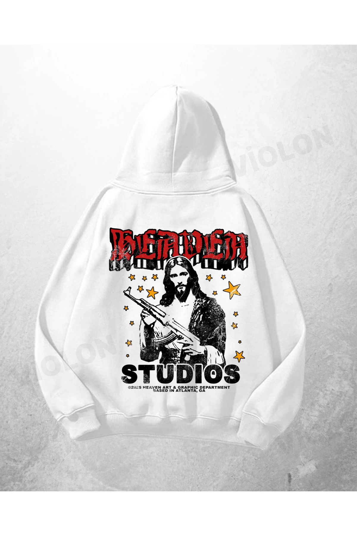 Beyaz Unisex Blastman Studios Baskılı Oversize Hoodie Sweatshirt