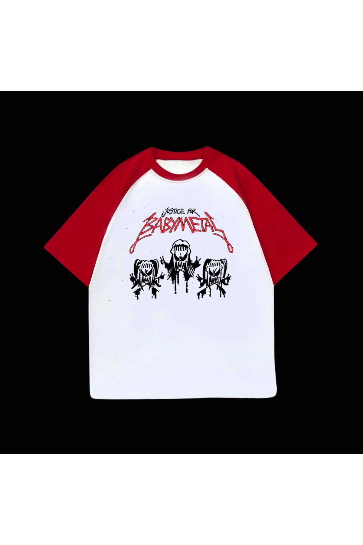 Beyaz Unisex Kırmızı Reglan Baby Metal T-Shirt