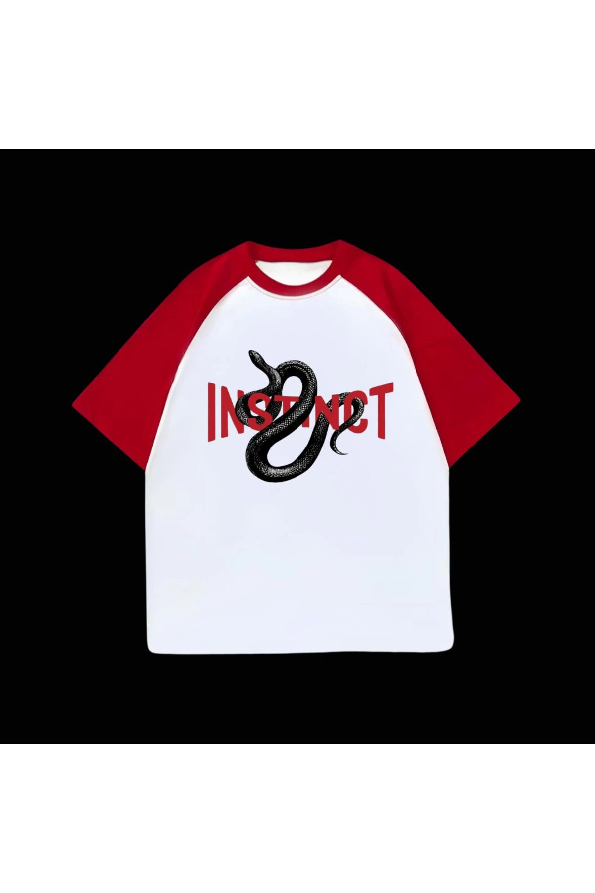 Beyaz Unisex Kırmızı Reglan Instinct Snake T-Shirt