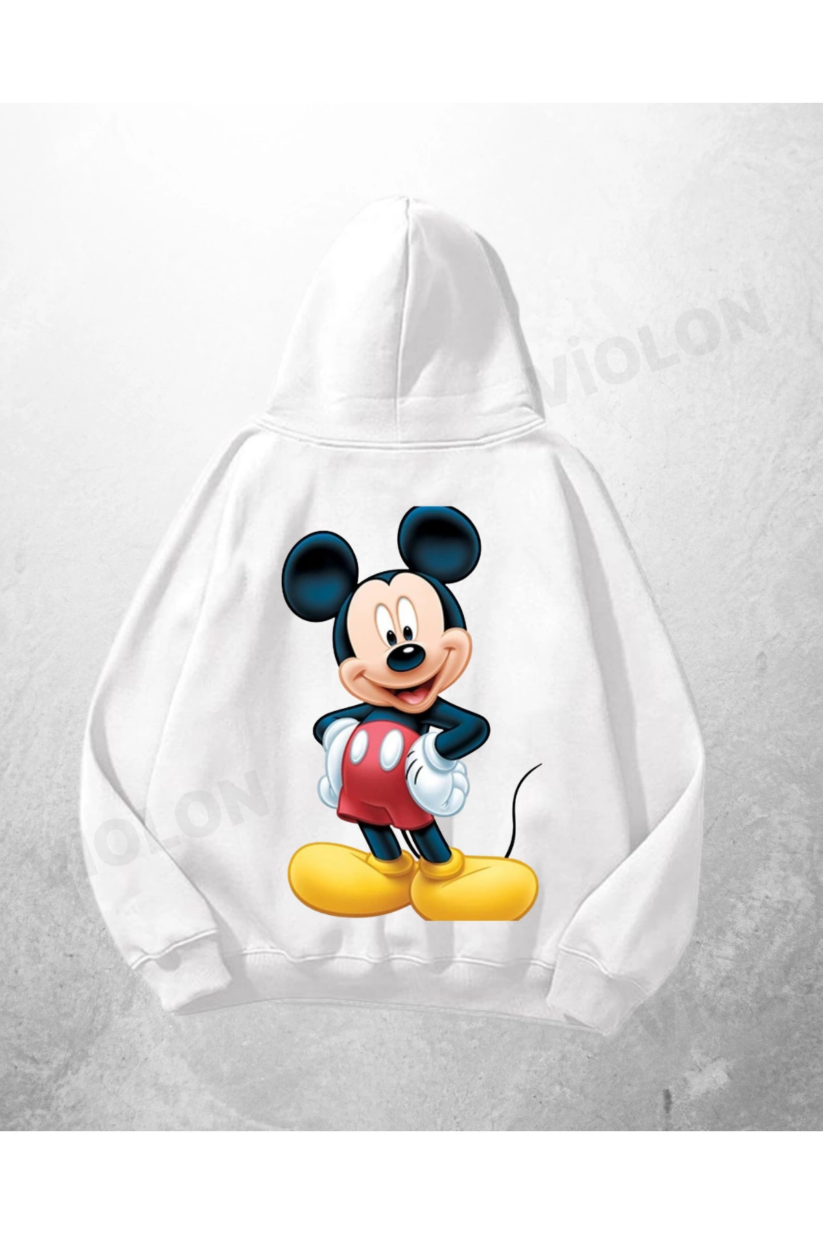 Beyaz Unisex Mickey Mouse Baskılı Oversize Hoodie Sweatshirt