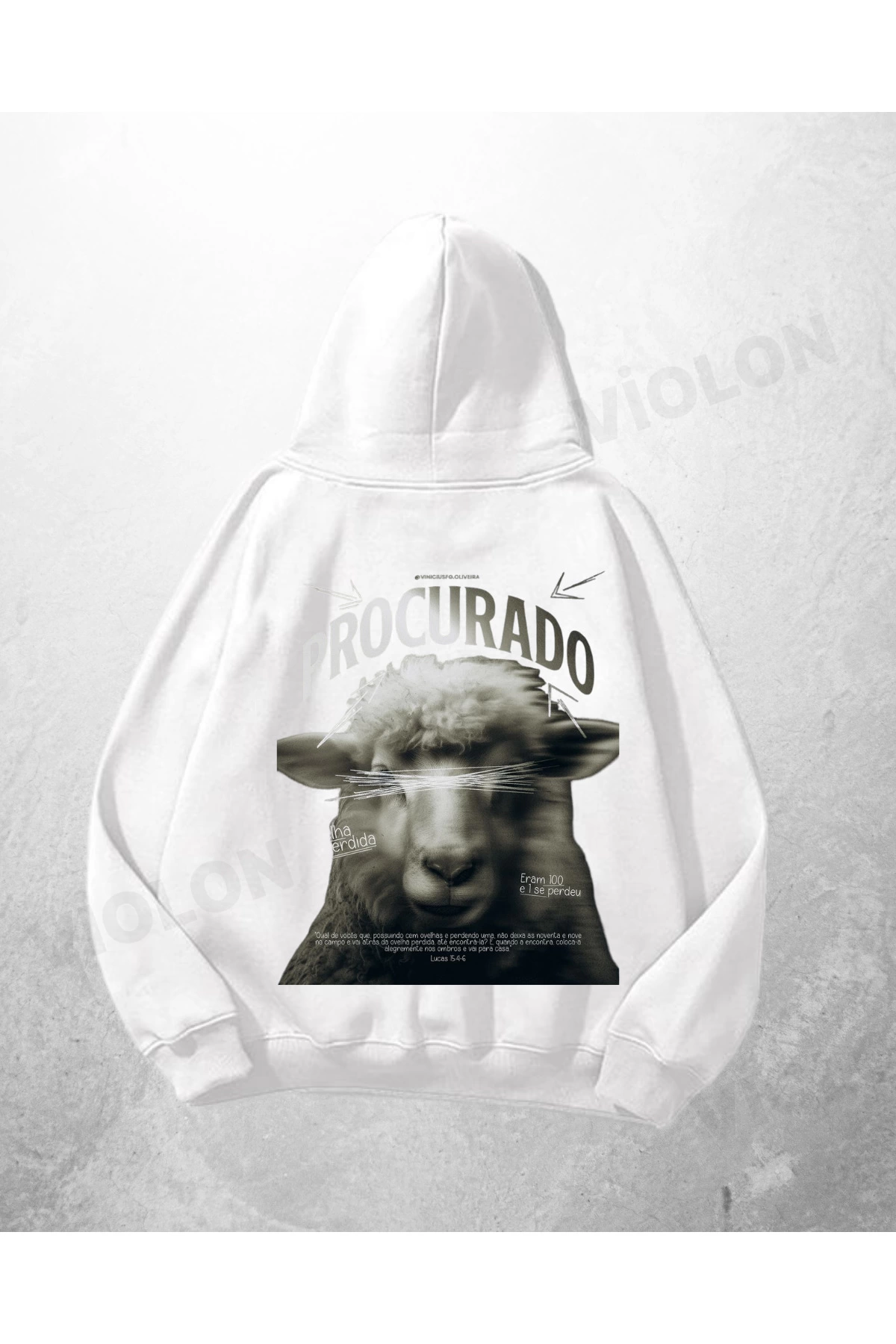 Beyaz Unisex Procurado Baskılı Oversize Hoodie Sweatshirt