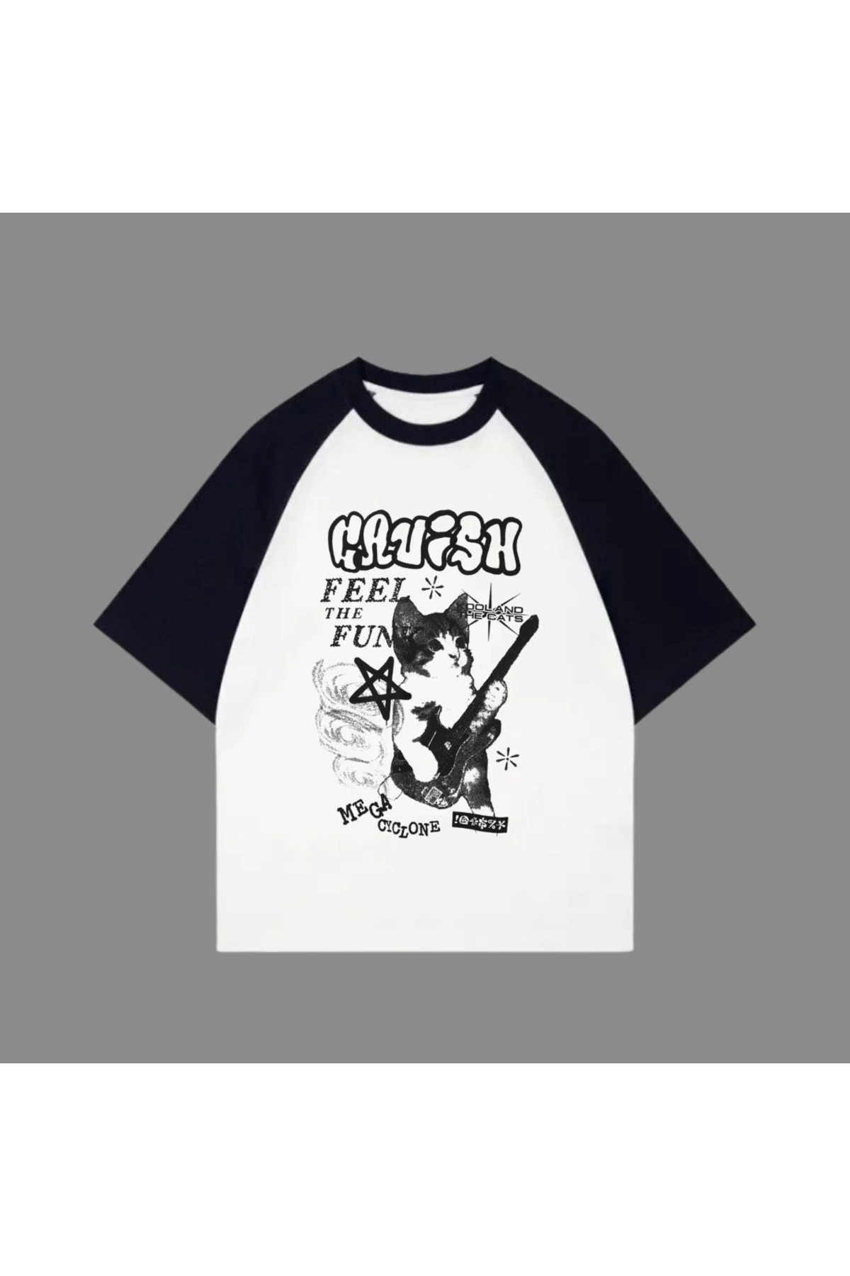 Beyaz Unisex Siyah Reglan Feel The Funk T-Shirt