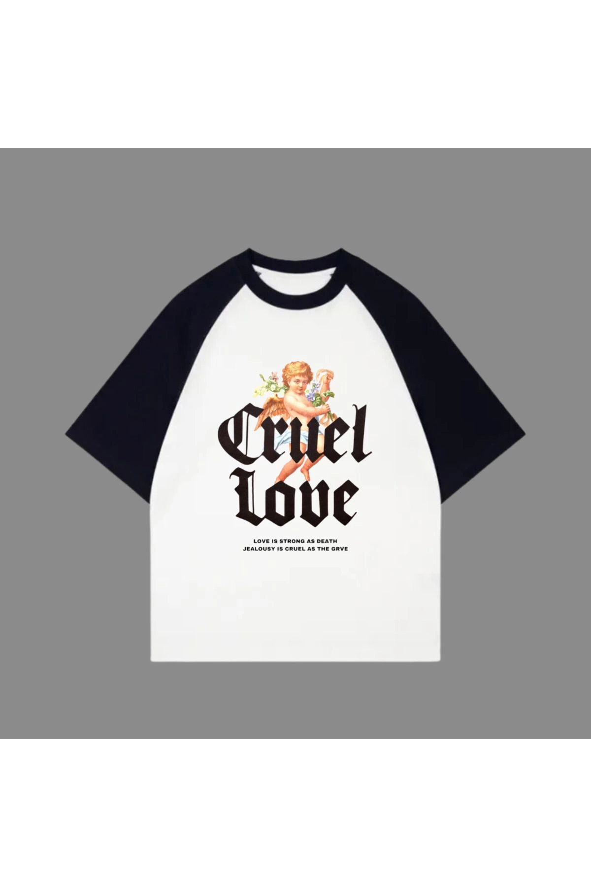 Beyaz Unisex Siyah Reglan Love Valentine's T-Shirt