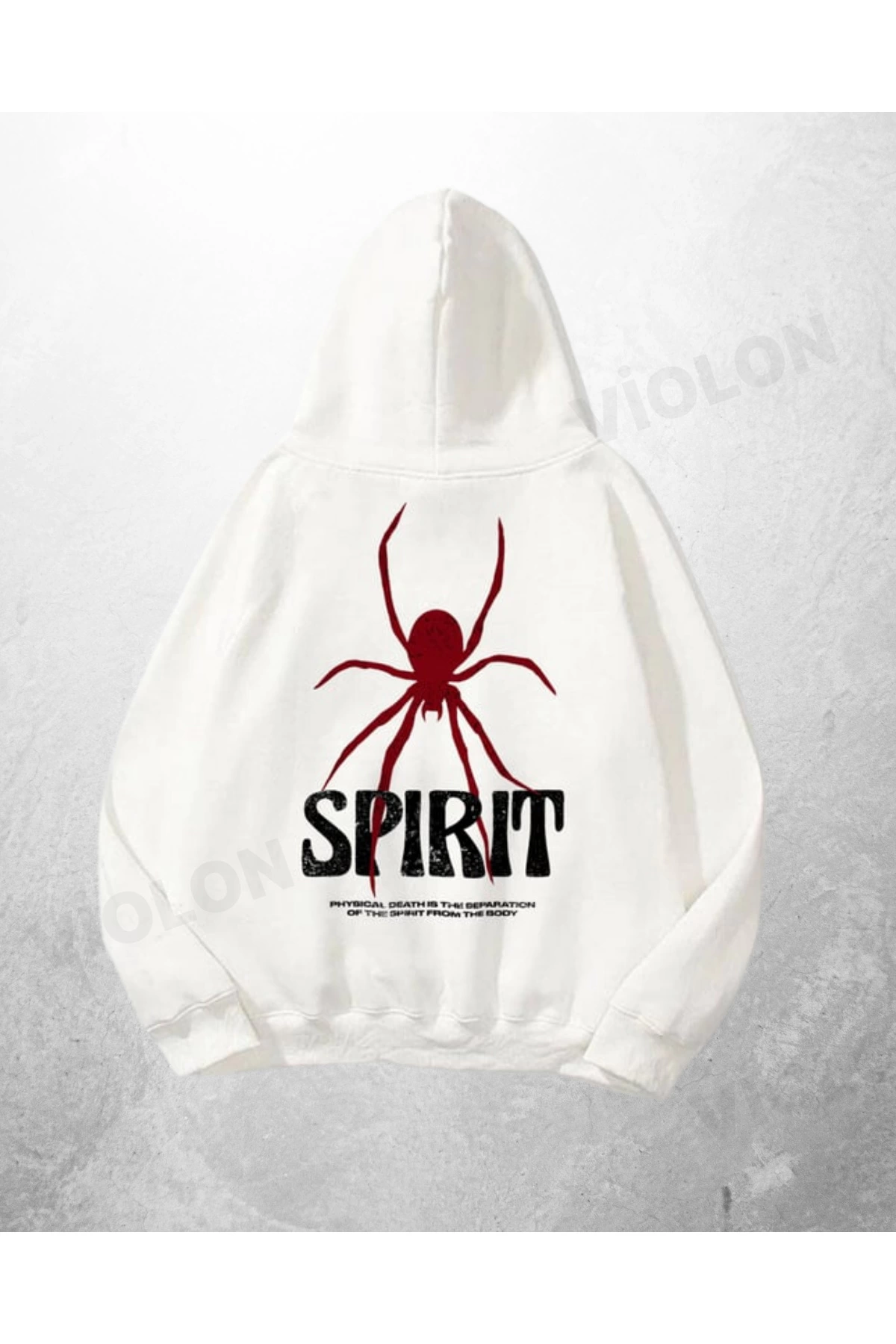 Beyaz Unisex Spirit Baskılı Oversize Hoodie Sweatshirt