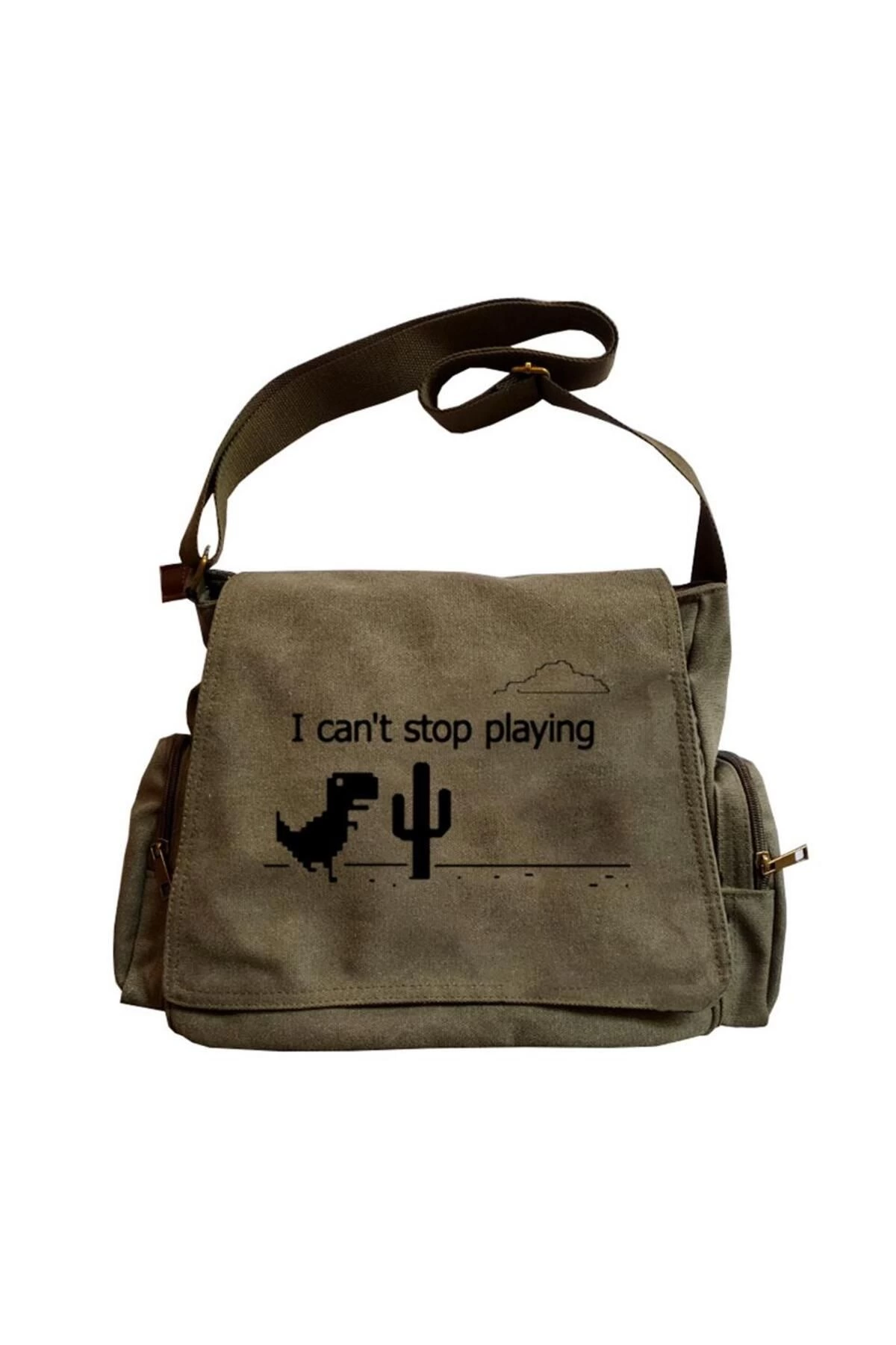 grnd Dinosaur Game Baskılı Unisex Yeşil Postacı Çantası