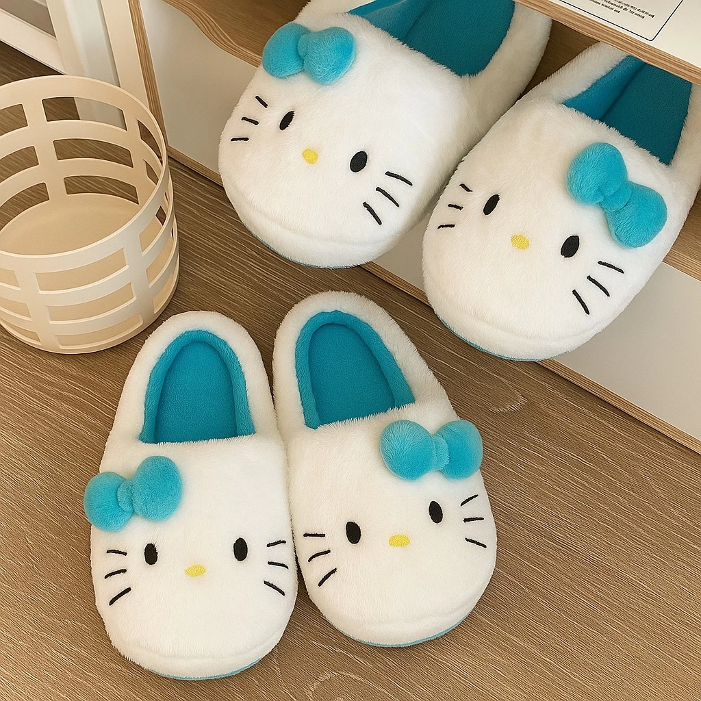 Hello Kitty Mavi Yumuşak Tüylü Peluş Panduf Terlik