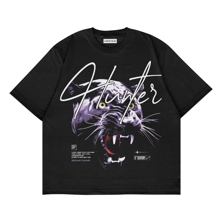 Hunter Baskılı Siyah Renk Oversize T-Shirt