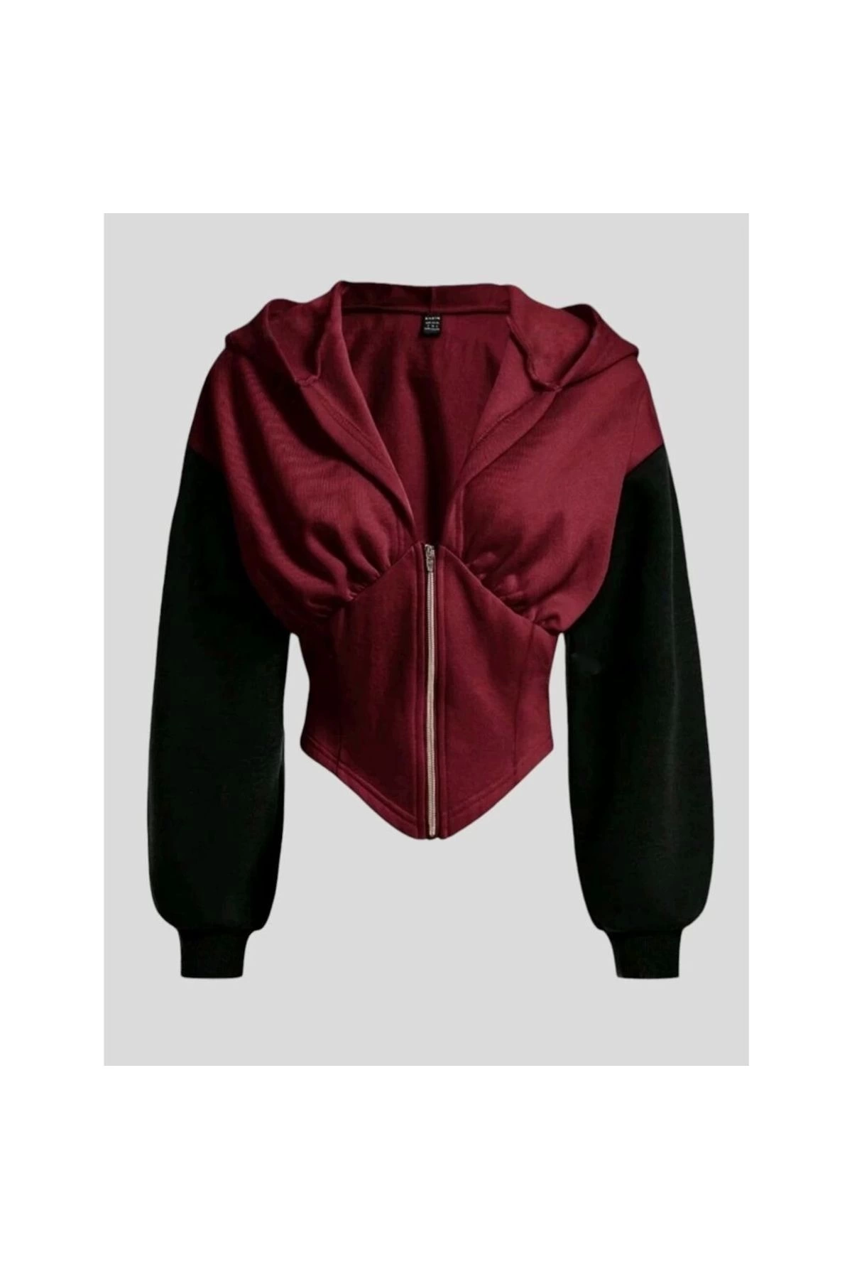 KIRMIZI Uzun Kollu Korse Kesim Fermuarlı Ceket