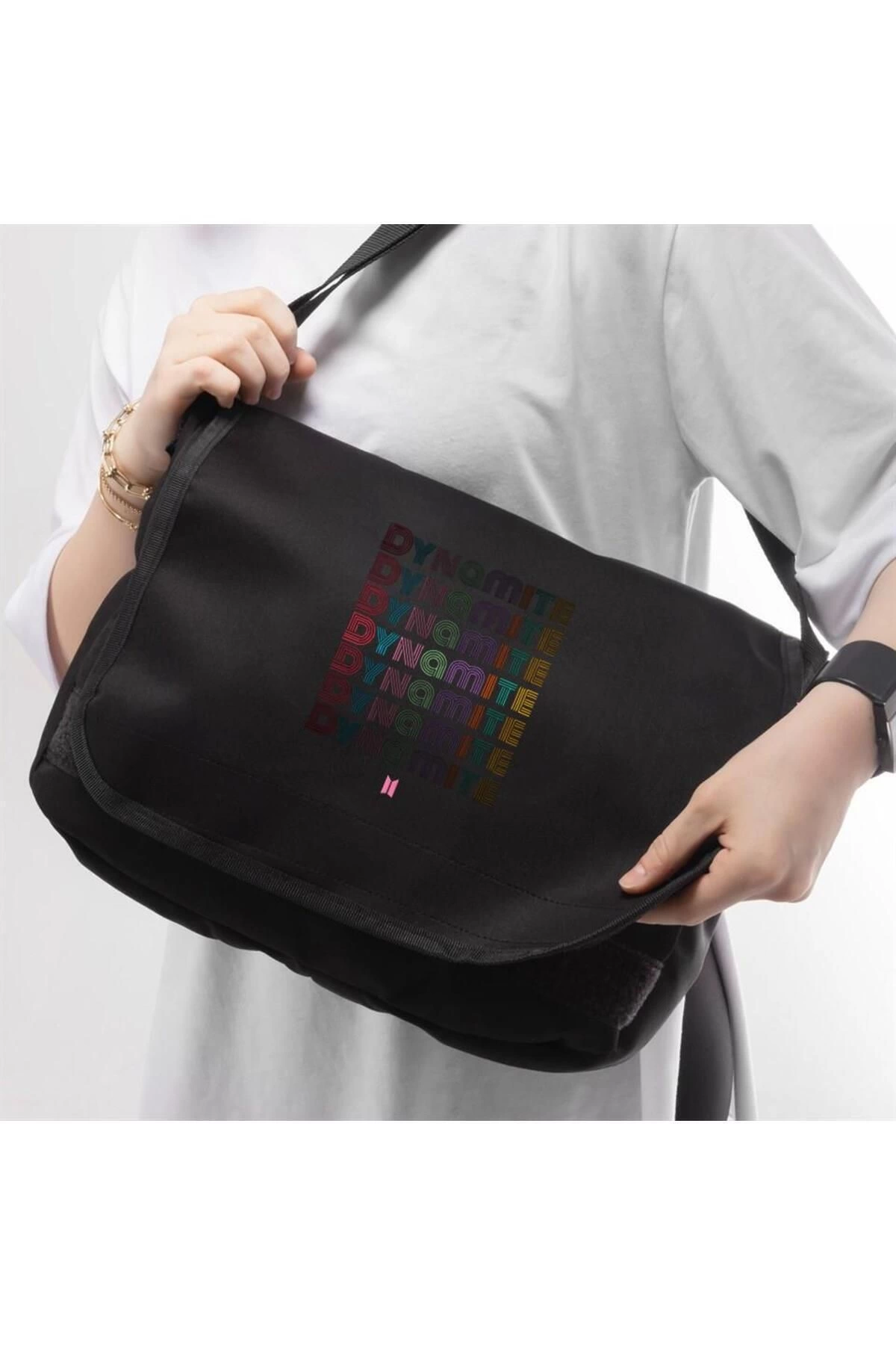 Kpop Serisi BTS Dynamite Baskılı Unisex Siyah Postacı Çantası