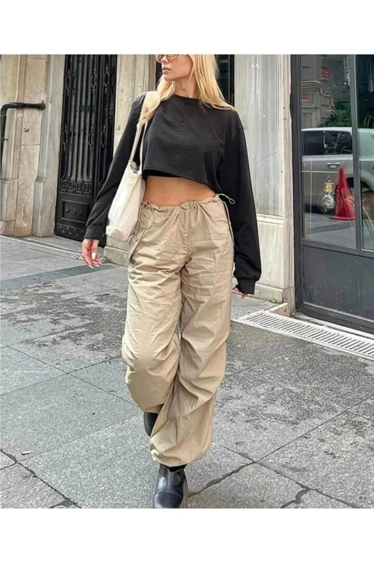 Krem Paraşüt Kumaş Beli Ve Paçası Ayarlanabilir Unisex Tactical Pantolon