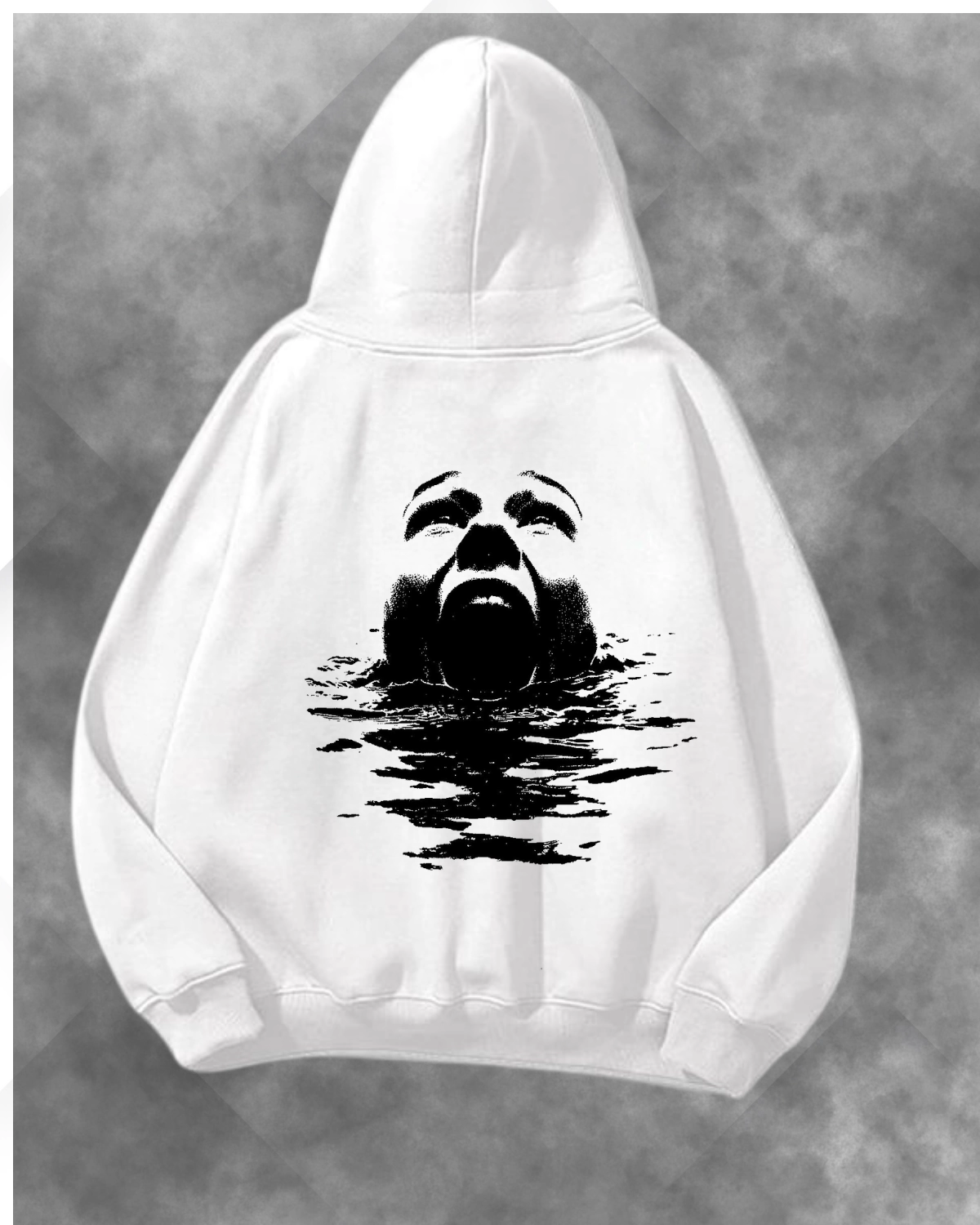 Çığlık Atan Yüz Baskılı Unisex Oversize Kapüşonlu Sweatshirt