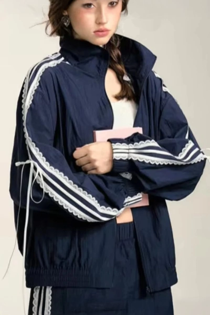 Lacivert Kurdeleli Dantelli Y2K Ceket