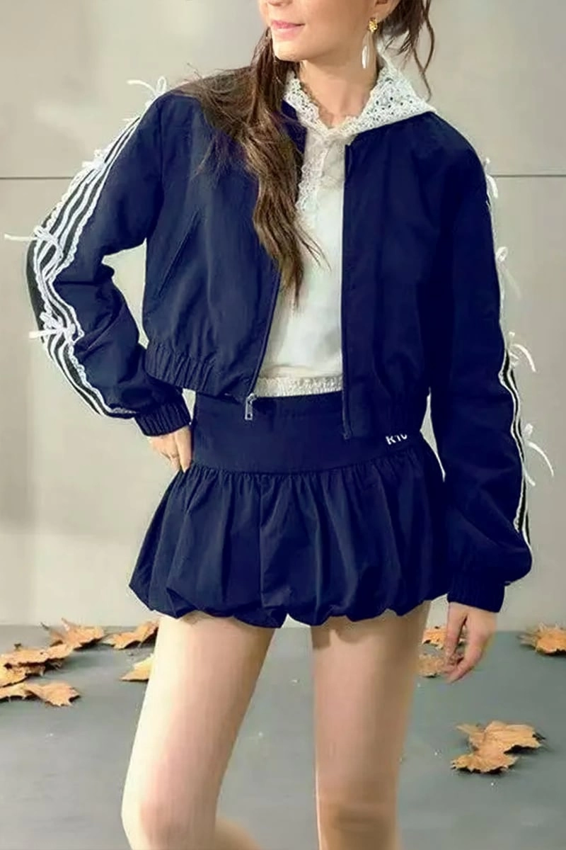 Lacivert Kurdeleli Dantelli Y2K Crop Ceket