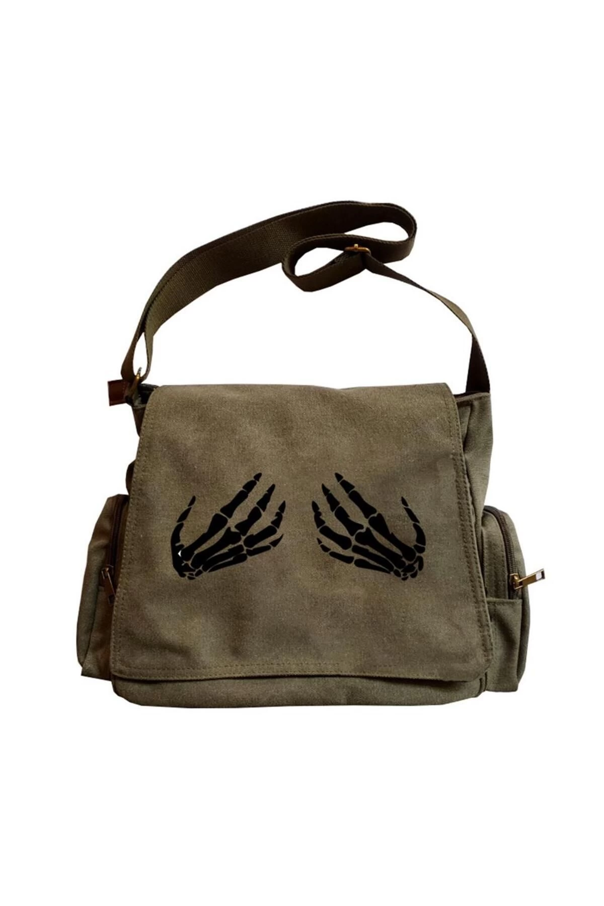 Morera Butik Skeleton Hands Baskılı Unisex Yeşil Postacı Çantası