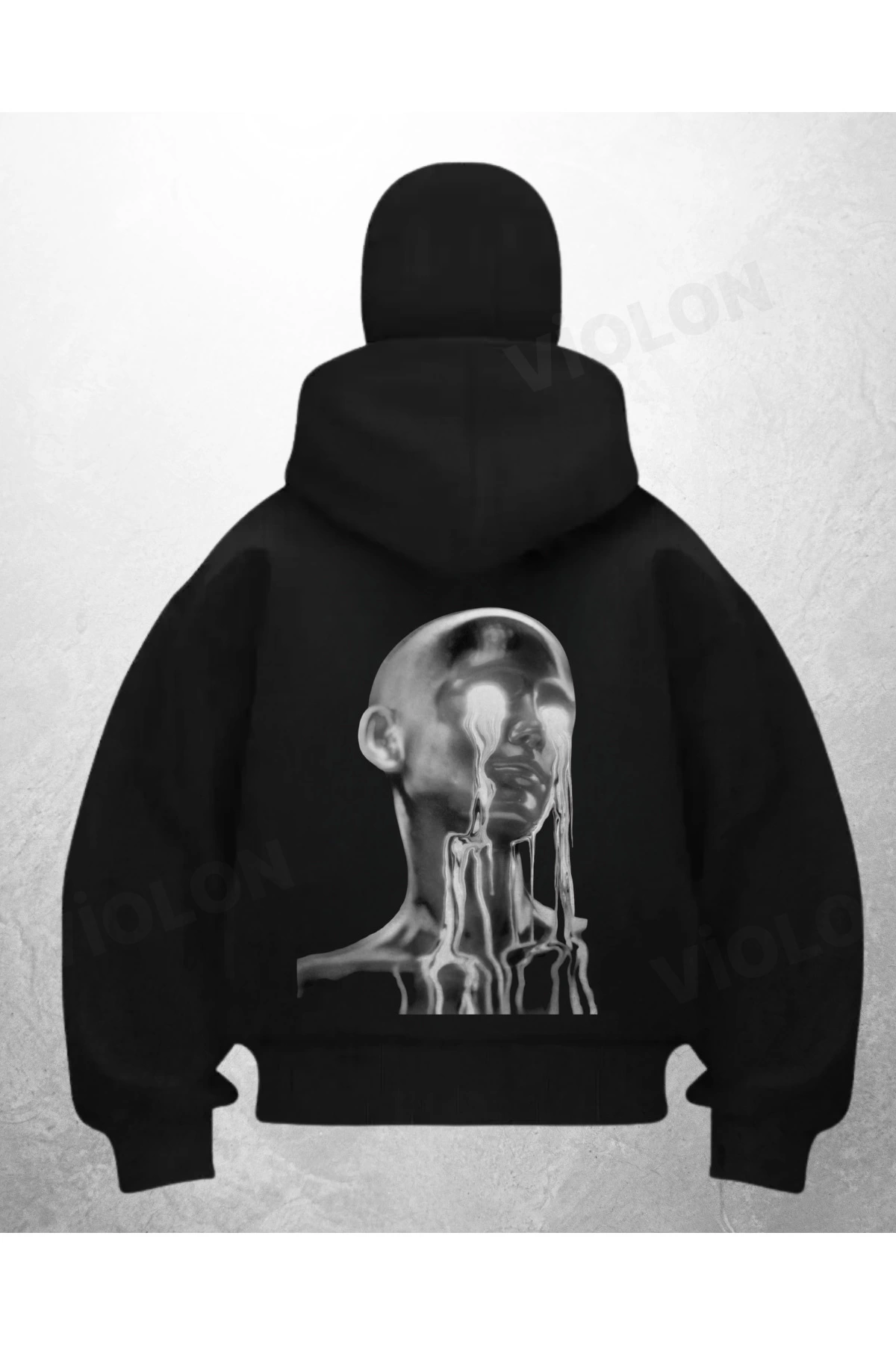 Robotic Cry Baskılı Siyah Samuray Kar Maske Sweatshirt Hırka