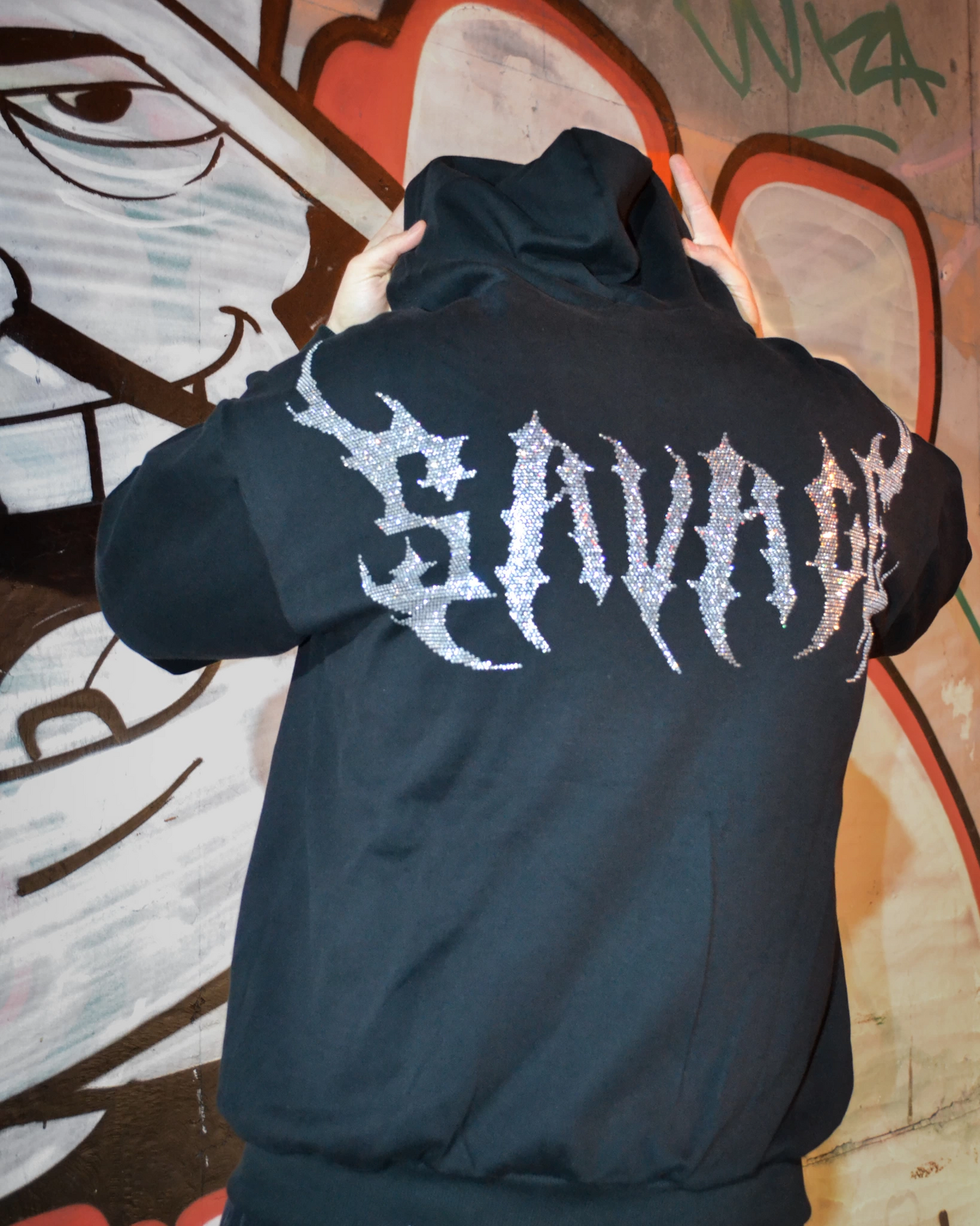 Savage taş baskılı maskeli oversize kalıp hırka