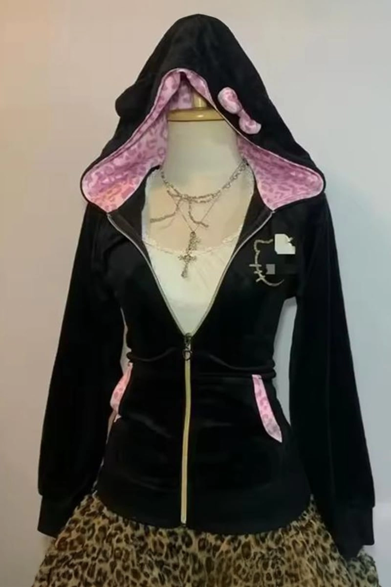 Siyah Hello Kitty Fiyonklu Y2K Hırka