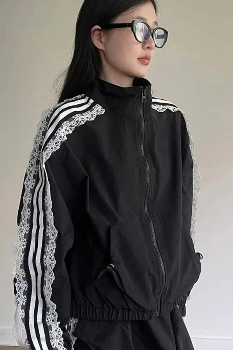 Siyah Kurdeleli Dantelli Y2K Ceket