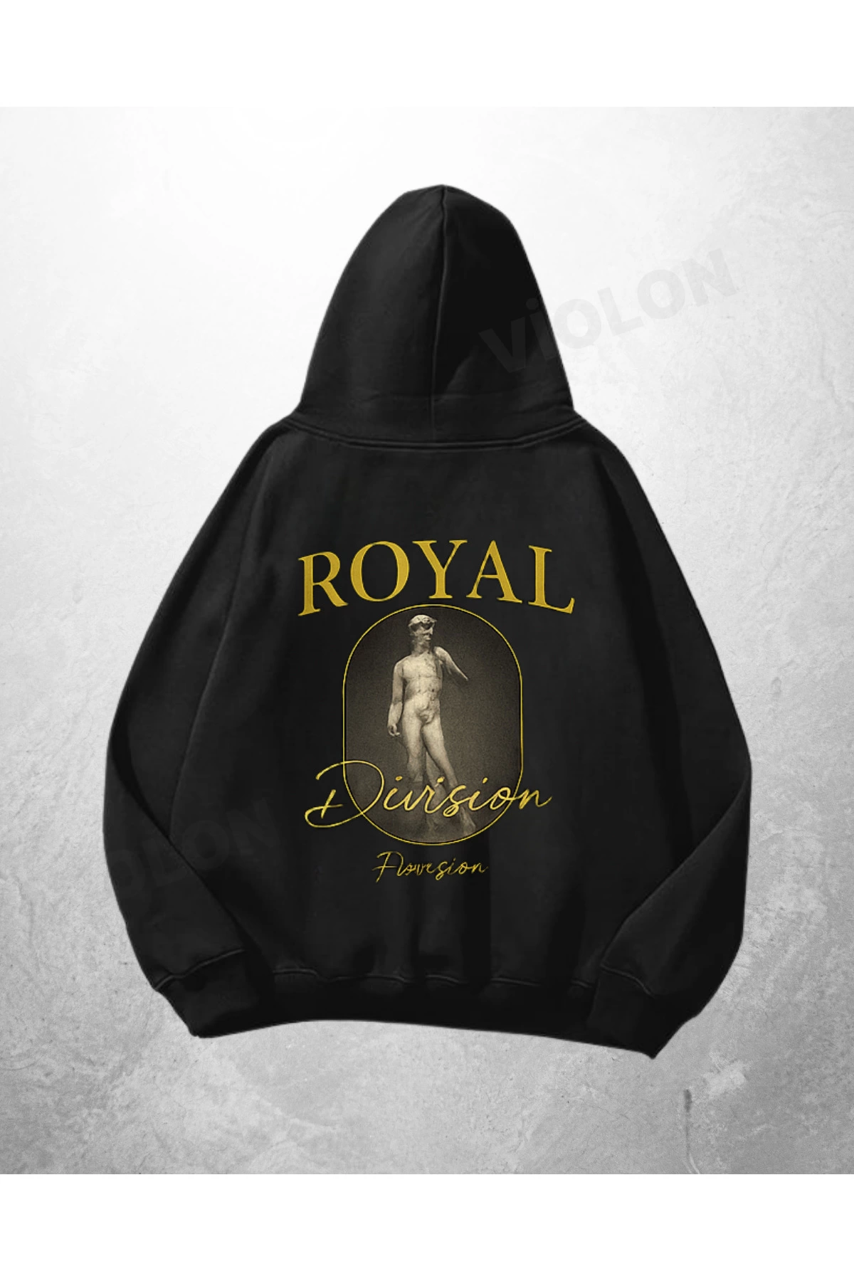 Siyah Unisex Royal Division Baskılı Oversize Hoodie Sweatshirt