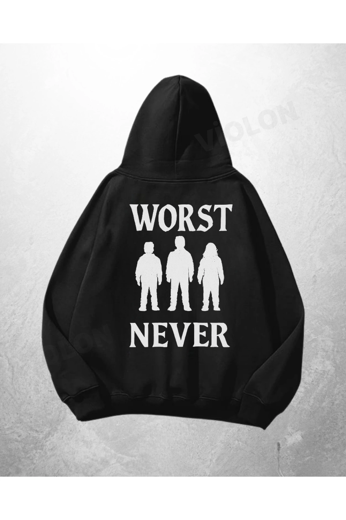 Siyah Unisex Worst Never Baskılı Oversize Hoodie Sweatshirt