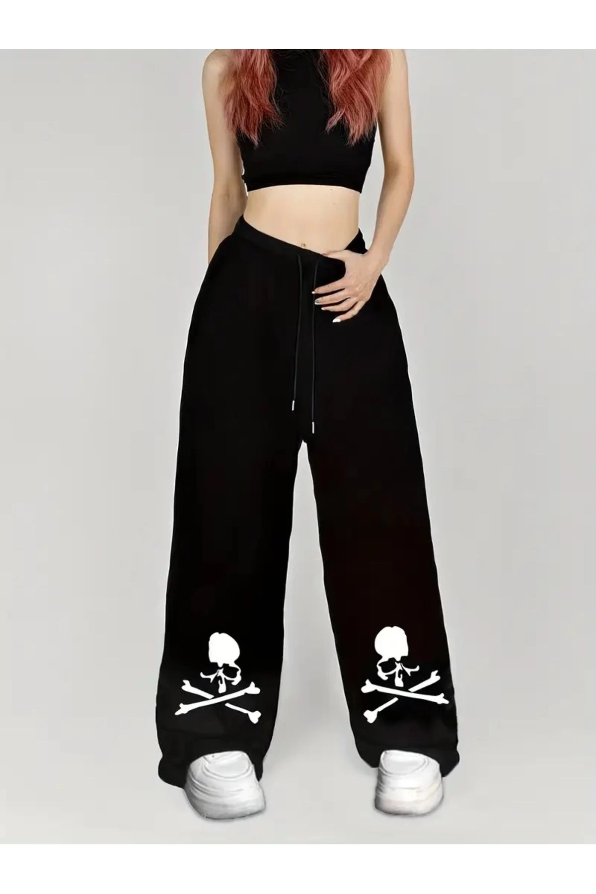 Skull Baskılı Oversize Baggy Eşofman Altı
