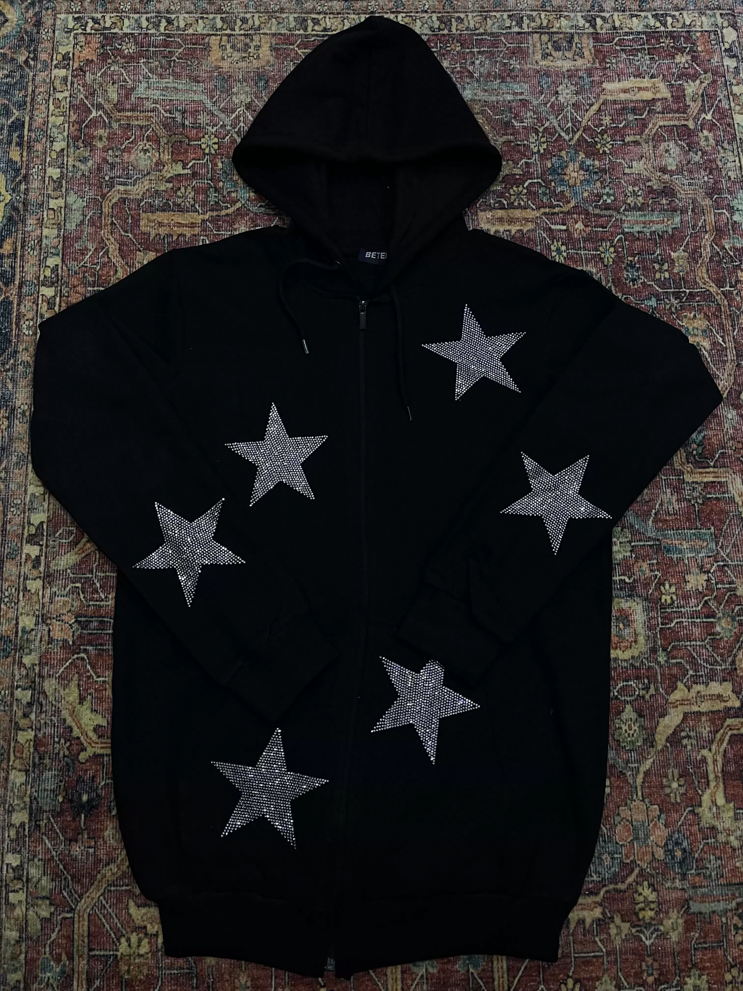 Star taş baskılı siyah renk hırka