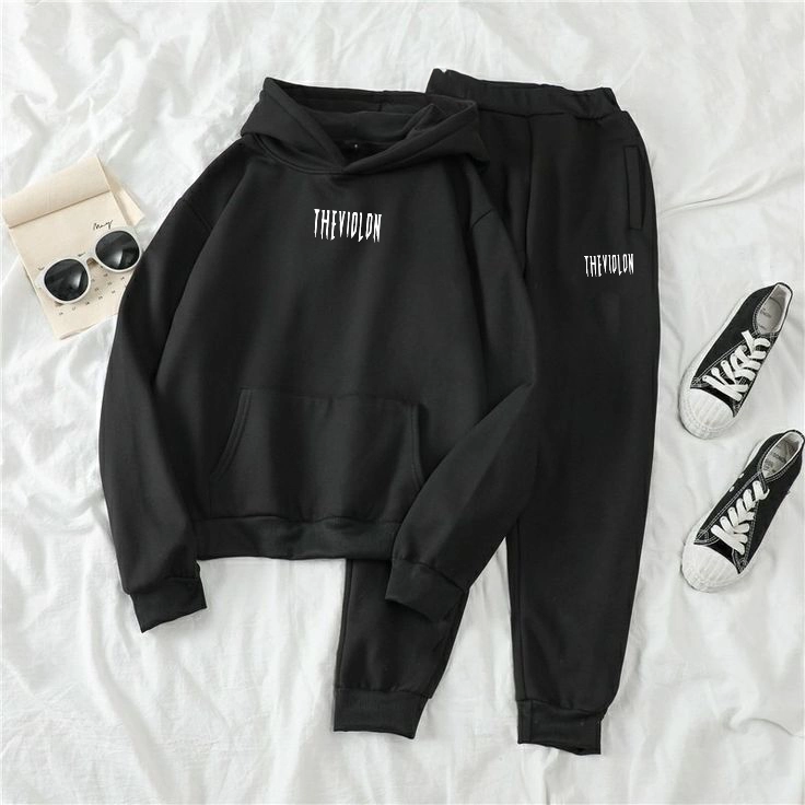The Violon Collection Siyah Renk Beyaz Baskılı Sweatshirt-Eşofman Alt Takım