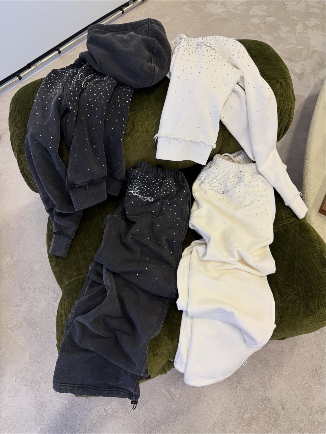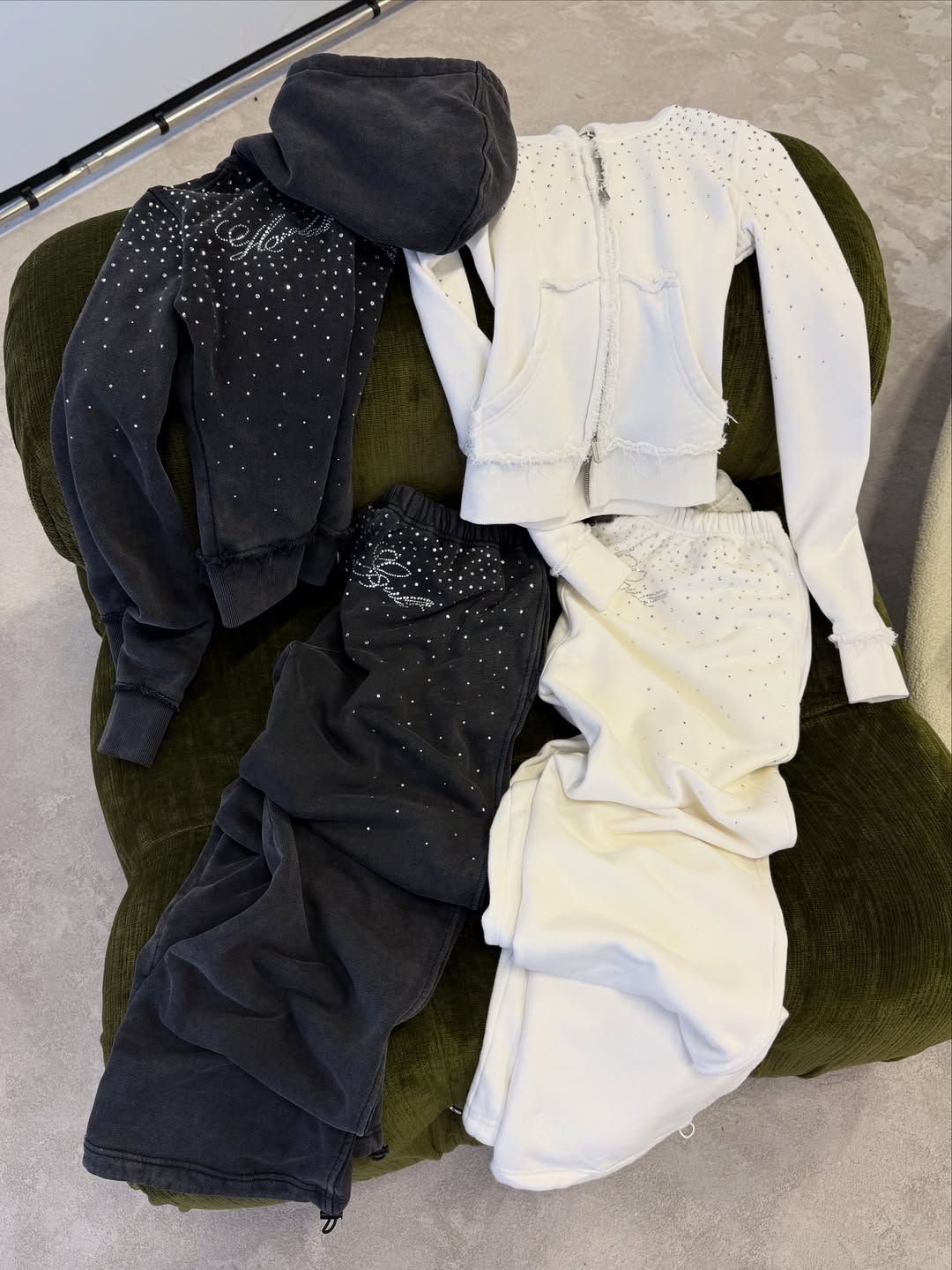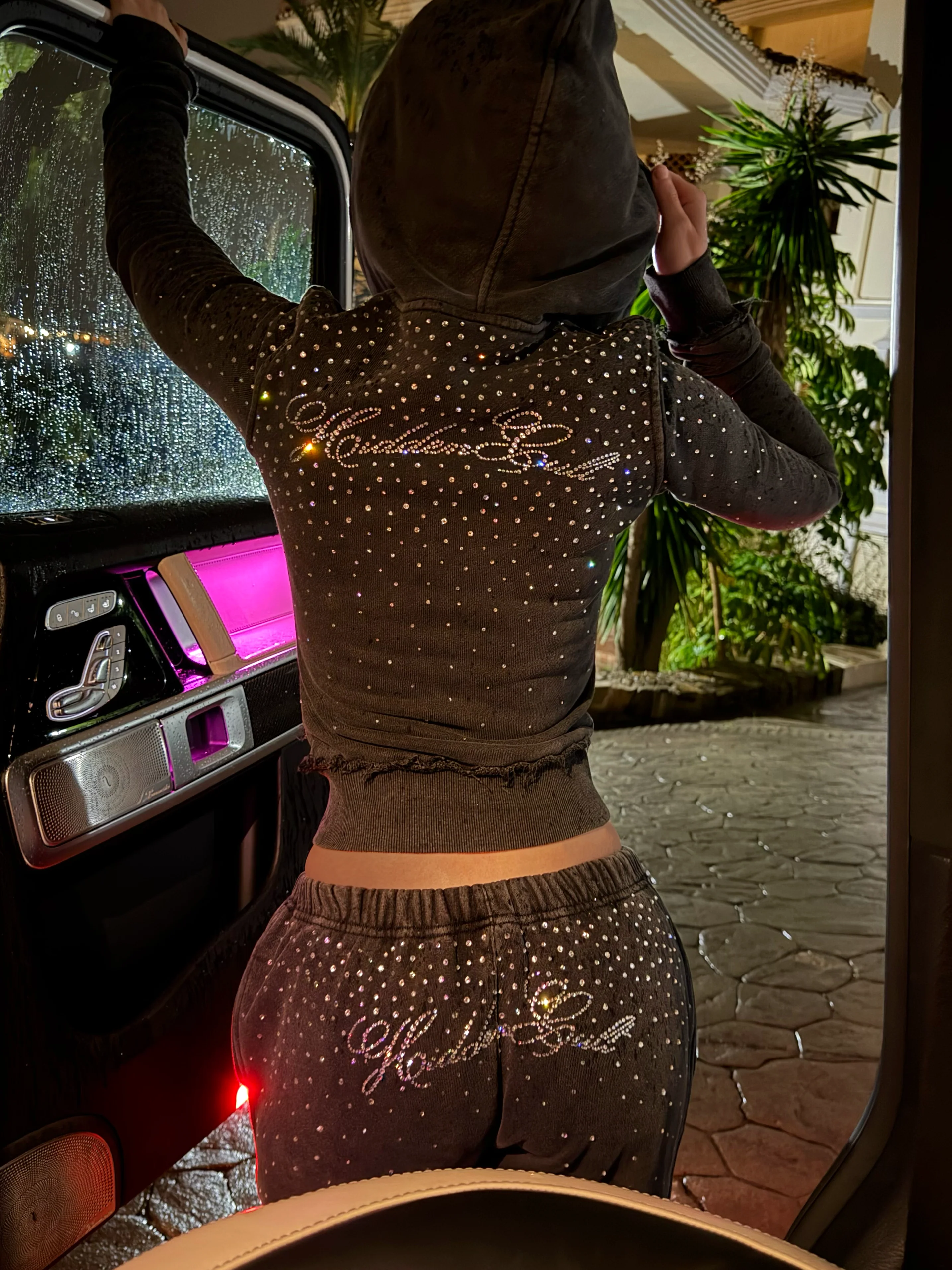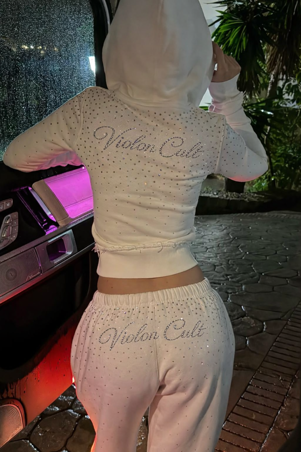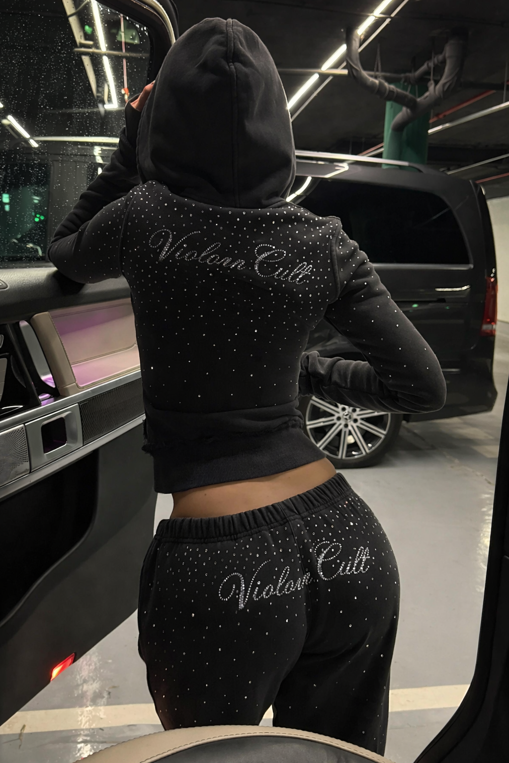 Işıltısıyla fark yaratan Eşofman Takımı, şıklık ve konforu bir arada sunar. Özel taş detaylarıyla tasarlanan hoodie ve eşofman altı, gün ışığında zarif bir parıltı, gece kombinlerinde ise dikkat çekici bir görünüm sağlar.
